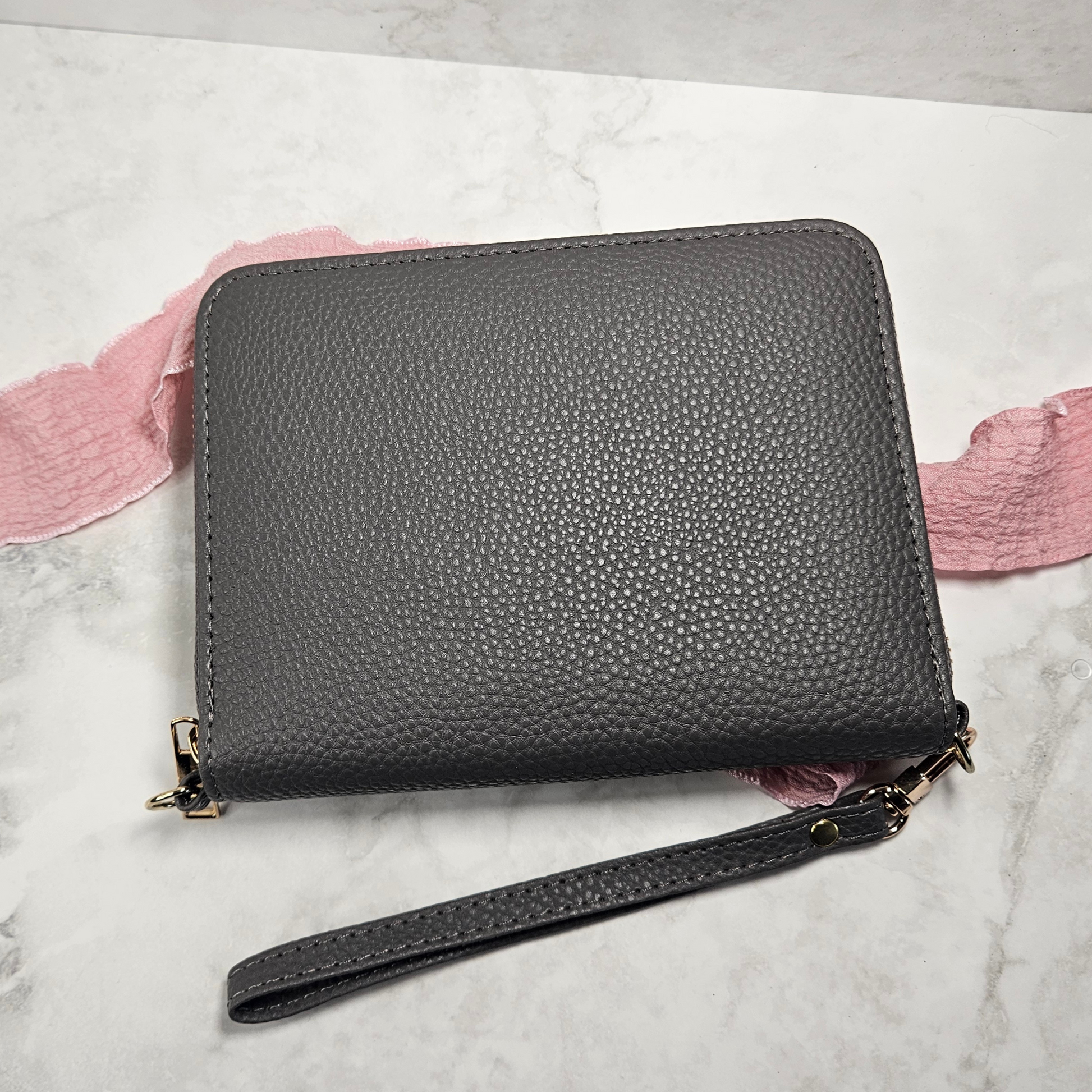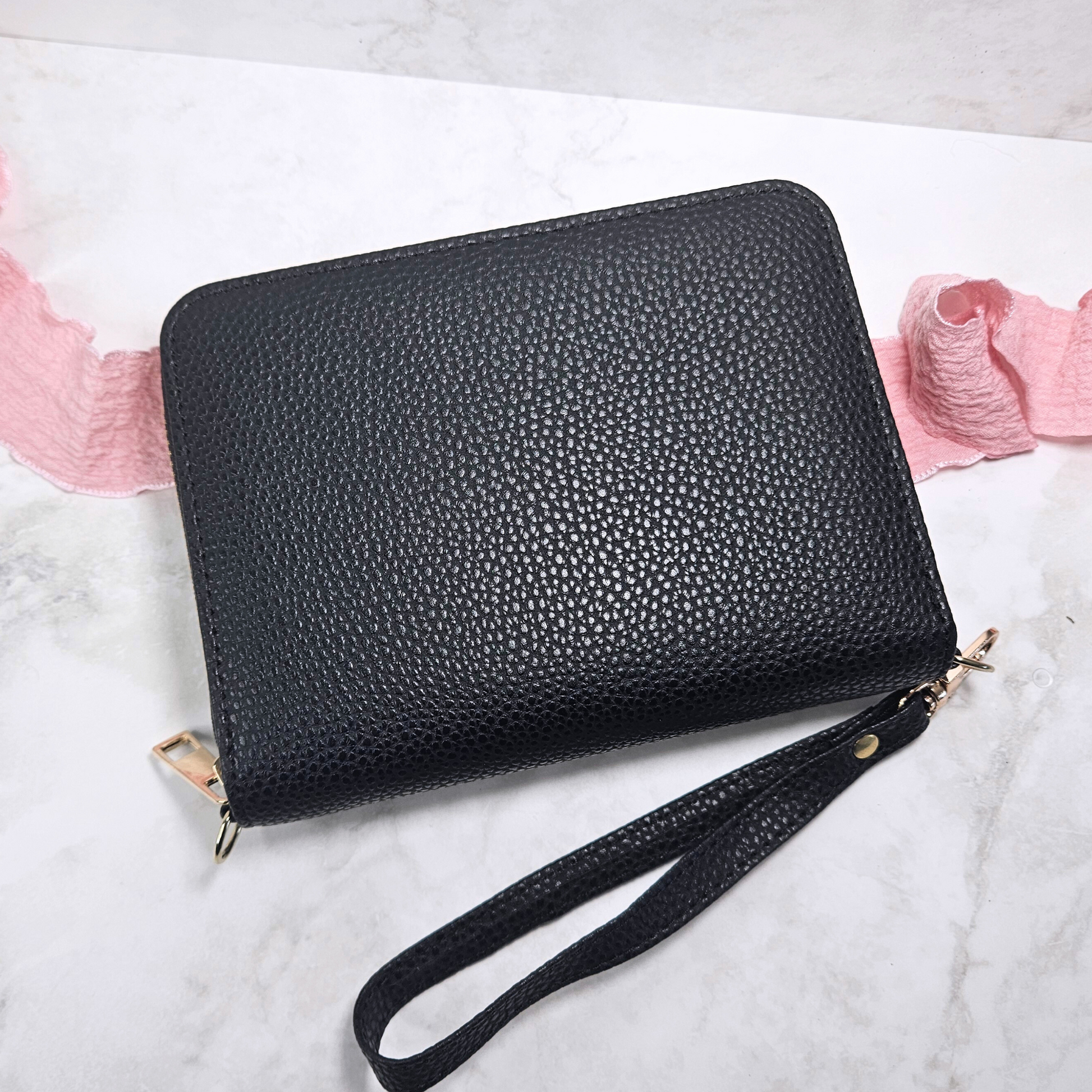 Porte-feuille A7 zippé avec anneaux dorés, idéal pour contenir toutes vos enveloppes budgétaires de la semaine.